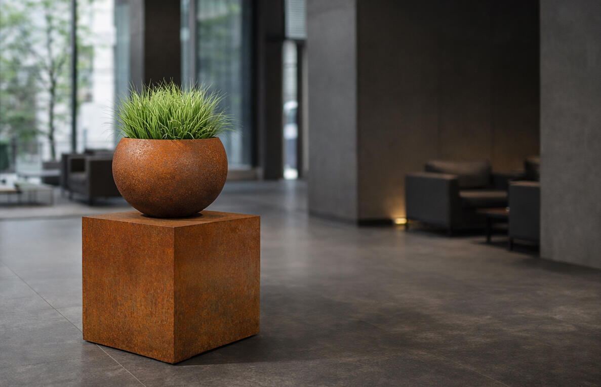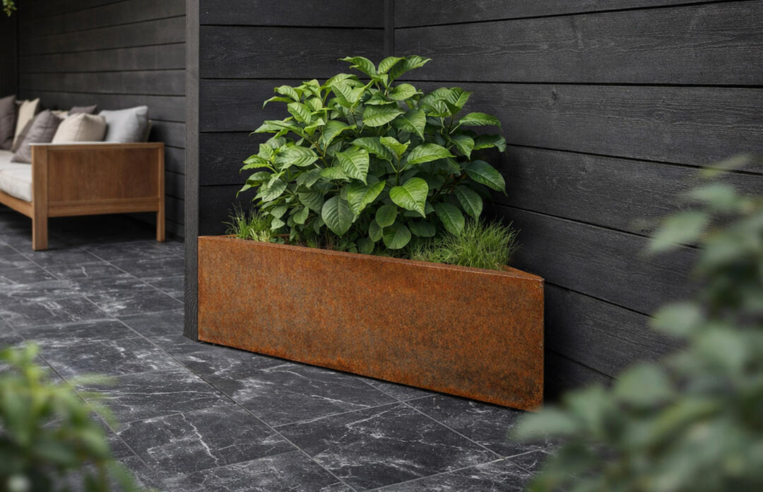 Corten-terase patina on elav pind. Ta muutub, hingab ja annab tootele Oma loo.